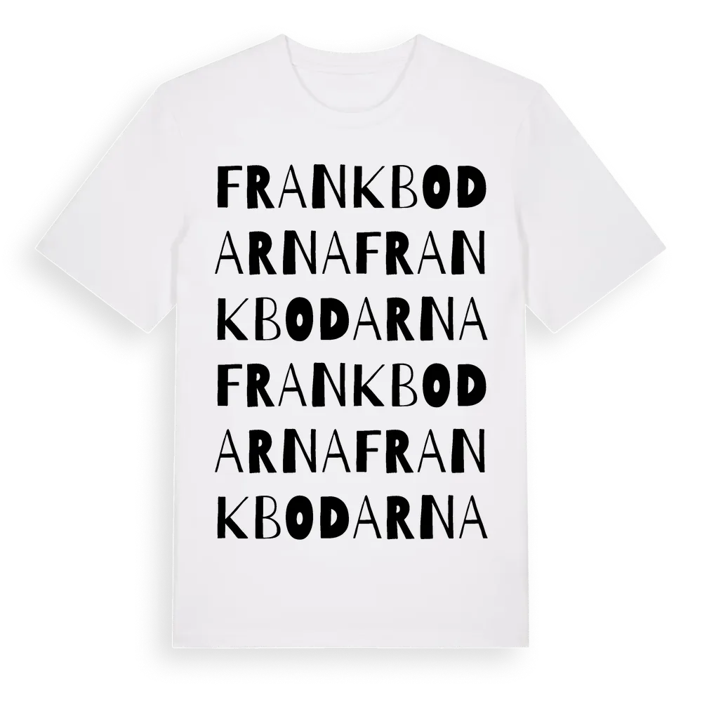 Frankbodarna ordlek t-shirt är inspirerad av Frankbodarna i Jämtlands län, Sverige. Tröjan är designad för dig som har en speciell koppling till platsen – oavsett om du bor här, har rötterna här eller bara älskar Frankbodarna.