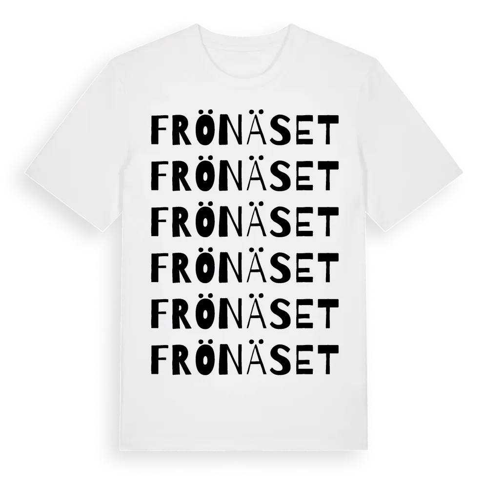 Frönäset ordlek t-shirt är inspirerad av Frönäset i Jämtlands län, Sverige. Tröjan är designad för dig som har en speciell koppling till platsen – oavsett om du bor här, har rötterna här eller bara älskar Frönäset.