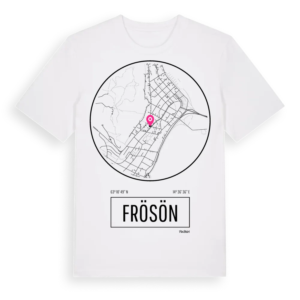 Frösön t-shirt är inspirerad av stadsdelen Frösön i Jämtlands län, Sverige. Tröjan är designad för dig som har en speciell koppling till platsen – oavsett om du bor här, har rötterna här eller bara älskar Frösön.