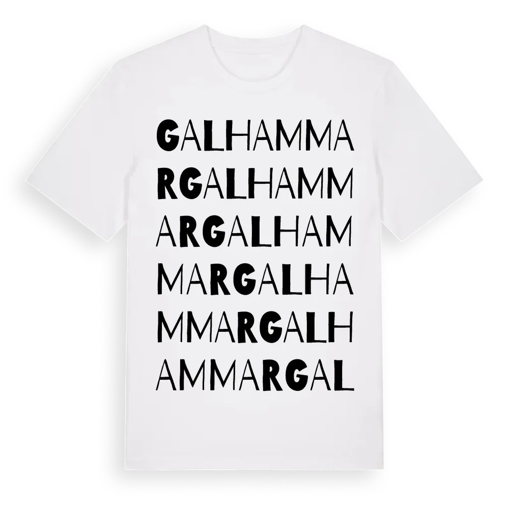 Galhammar ordlek t-shirt är inspirerad av byn Galhammar i Jämtlands län, Sverige. Tröjan är designad för dig som har en speciell koppling till platsen – oavsett om du bor här, har rötterna här eller bara älskar Galhammar.