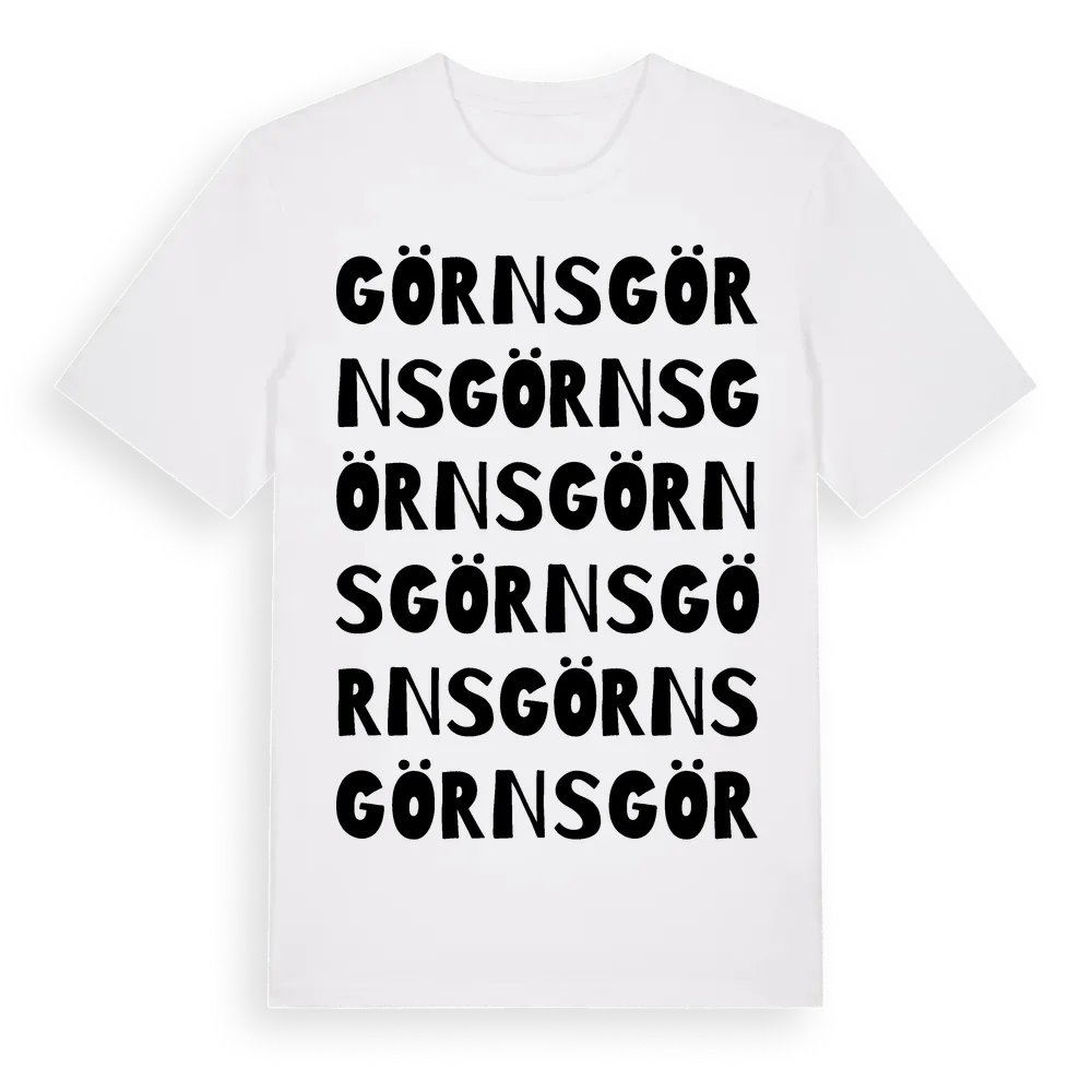 En ordlek byggd på Görnss namn. Subtilt och klurig – ett motiv som bara de som verkligen känner platsen fullt ut förstår. Premium bomull, unisex – från Görns i Jämtlands län.