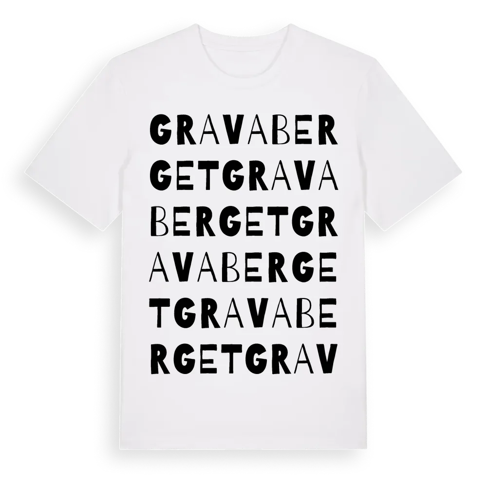 Gravaberget ordlek t-shirt är inspirerad av Gravaberget i Jämtlands län, Sverige. Tröjan är designad för dig som har en speciell koppling till platsen – oavsett om du bor här, har rötterna här eller bara älskar Gravaberget.