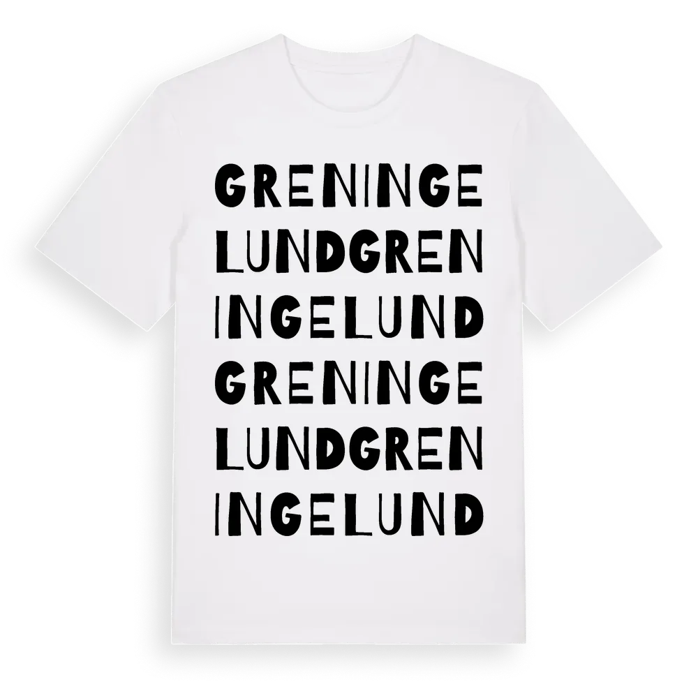 Greningelund ordlek t-shirt är inspirerad av Greningelund i Jämtlands län, Sverige. Tröjan är designad för dig som har en speciell koppling till platsen – oavsett om du bor här, har rötterna här eller bara älskar Greningelund.
