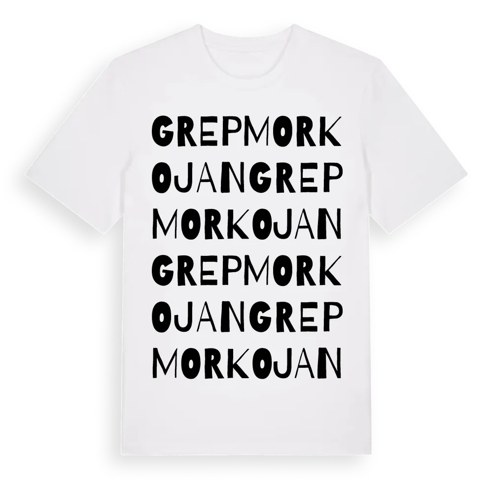 Grepmorkojan ordlek t-shirt är inspirerad av Grepmorkojan i Jämtlands län, Sverige. Tröjan är designad för dig som har en speciell koppling till platsen – oavsett om du bor här, har rötterna här eller bara älskar Grepmorkojan.