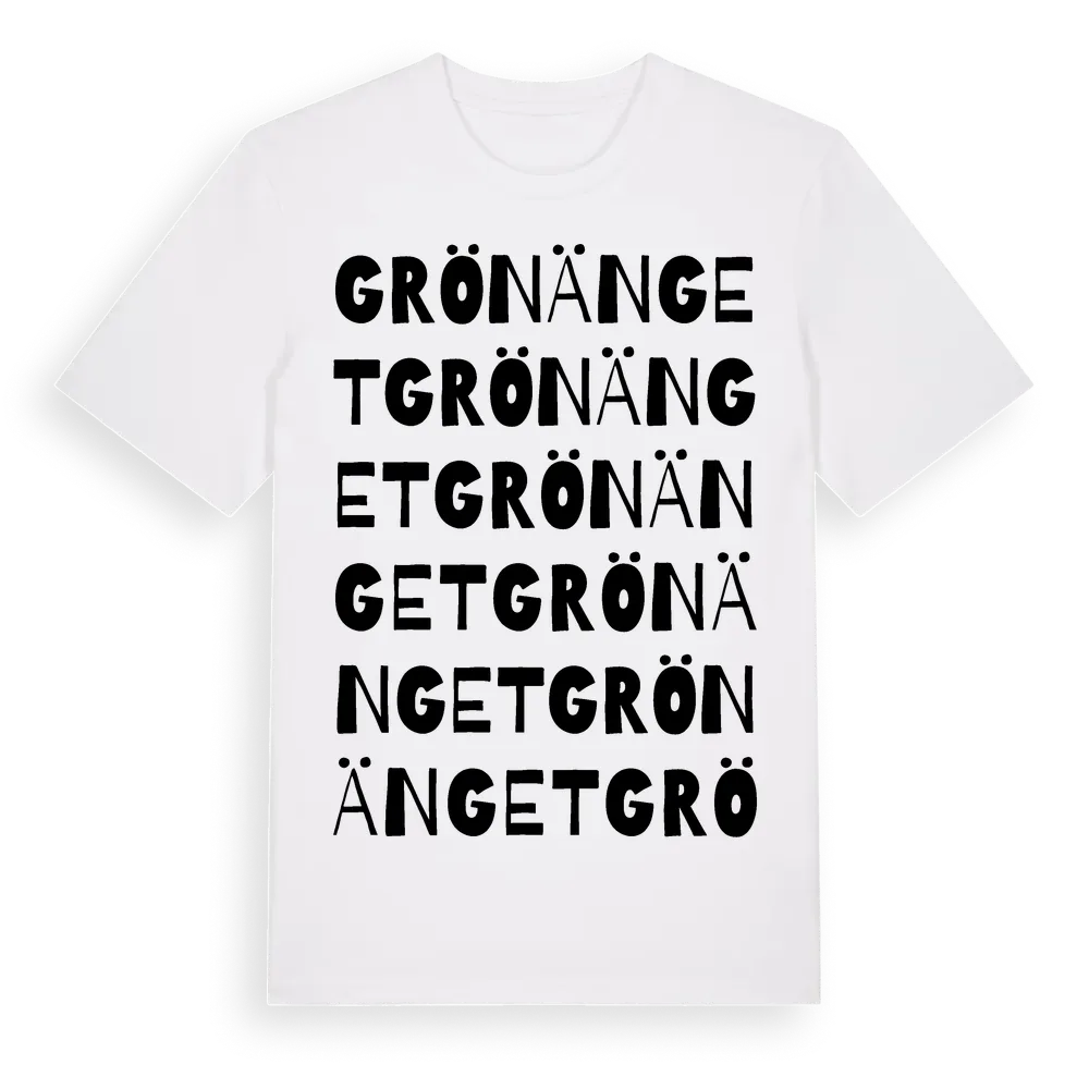 Grönänget ordlek t-shirt är inspirerad av Grönänget i Jämtlands län, Sverige. Tröjan är designad för dig som har en speciell koppling till platsen – oavsett om du bor här, har rötterna här eller bara älskar Grönänget.