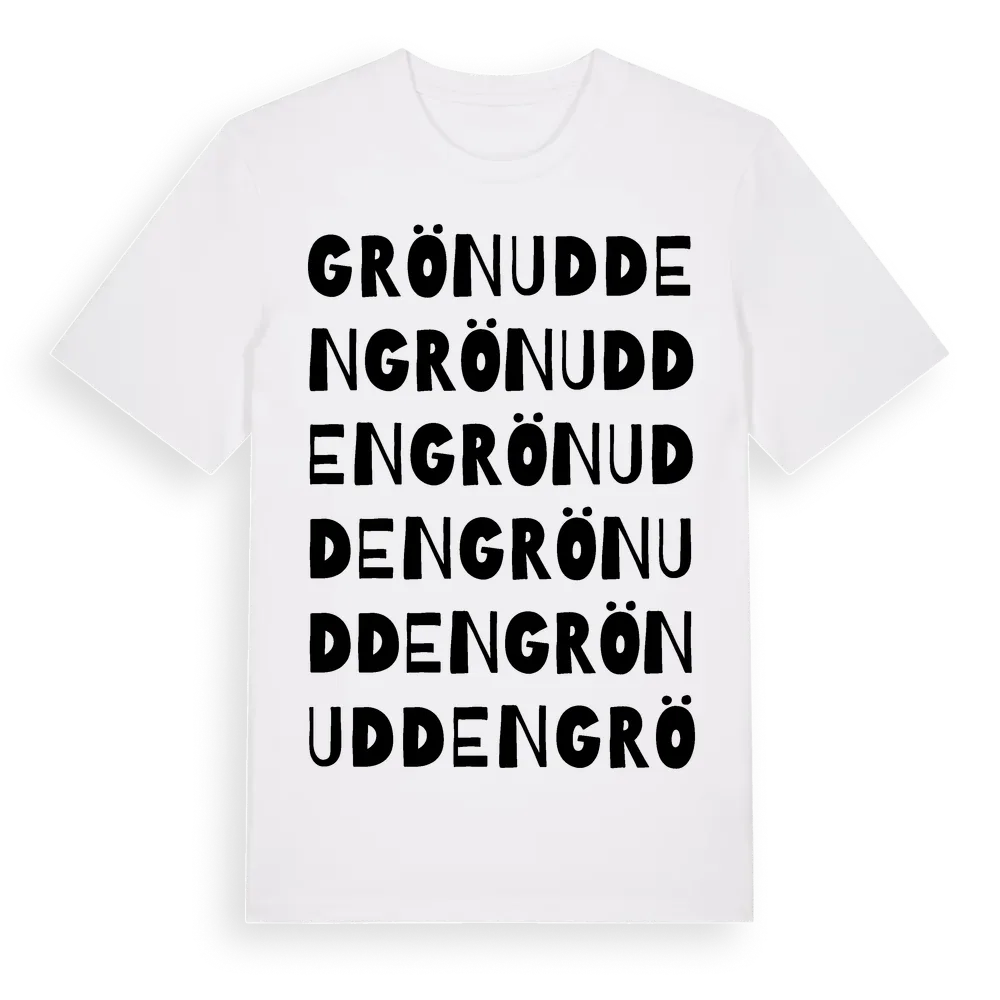 Grönudden ordlek t-shirt är inspirerad av Grönudden i Jämtlands län, Sverige. Tröjan är designad för dig som har en speciell koppling till platsen – oavsett om du bor här, har rötterna här eller bara älskar Grönudden.