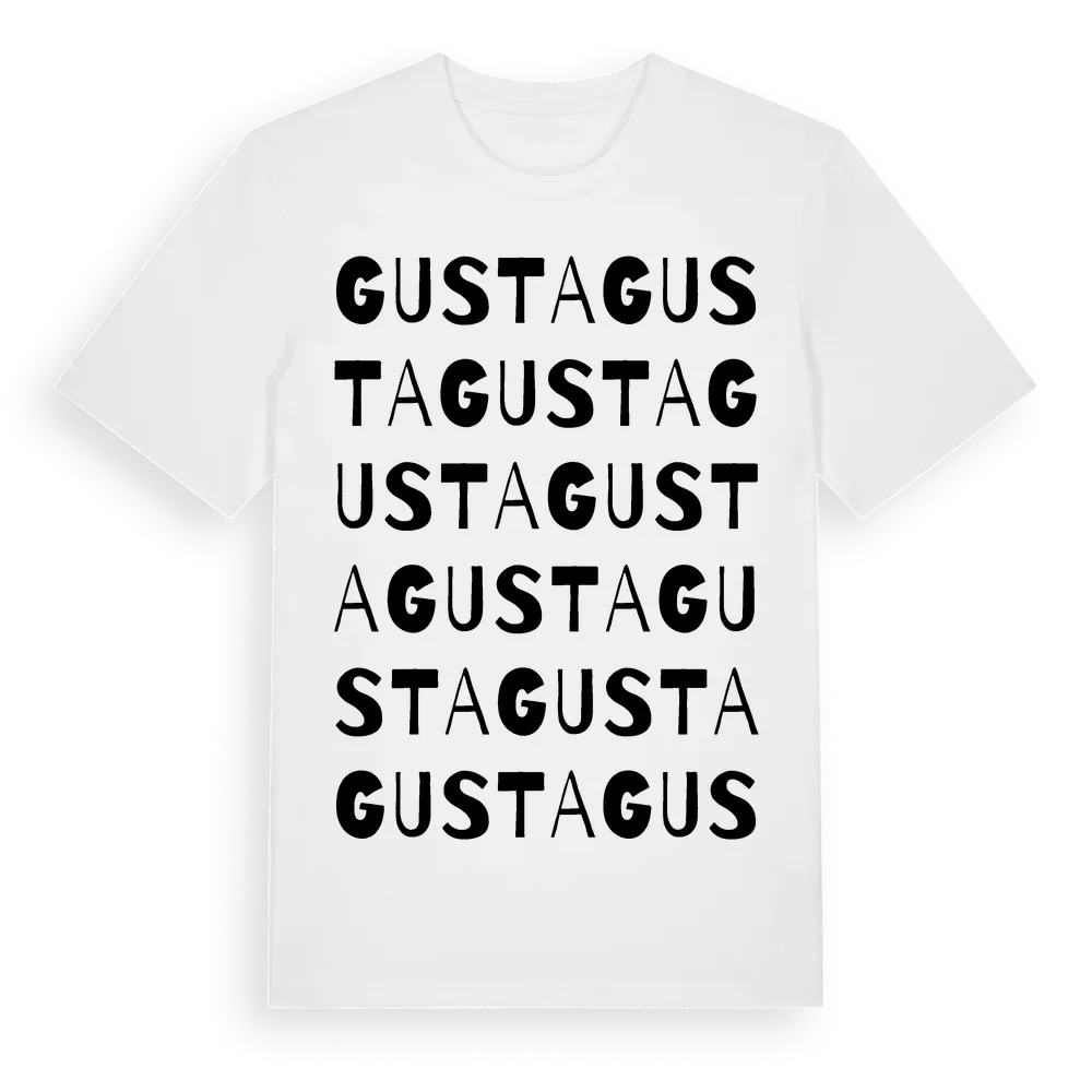 Gusta ordlek t-shirt är inspirerad av byn Gusta i Jämtlands län, Sverige. Tröjan är designad för dig som har en speciell koppling till platsen – oavsett om du bor här, har rötterna här eller bara älskar Gusta.