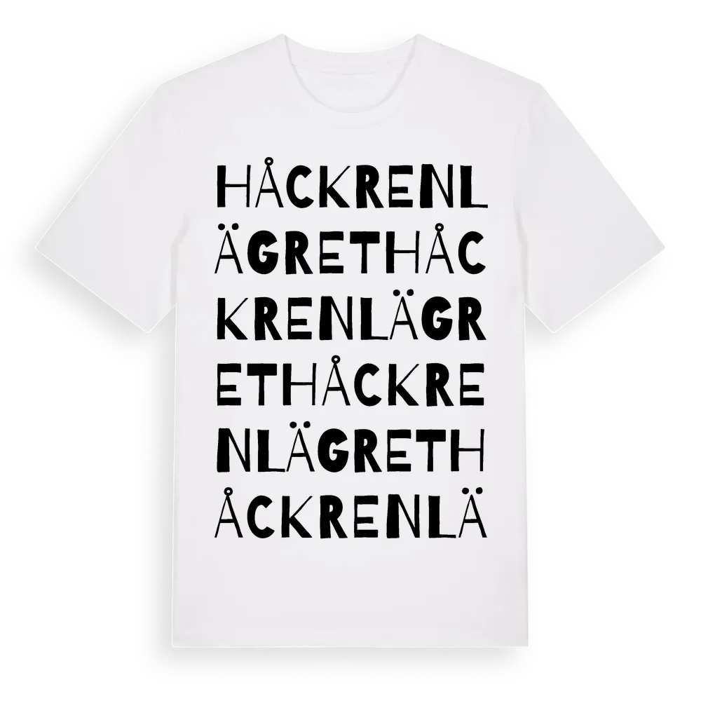 Håckrenlägret ordlek t-shirt är inspirerad av byn Håckrenlägret i Jämtlands län, Sverige. Tröjan är designad för dig som har en speciell koppling till platsen – oavsett om du bor här, har rötterna här eller bara älskar Håckrenlägret.