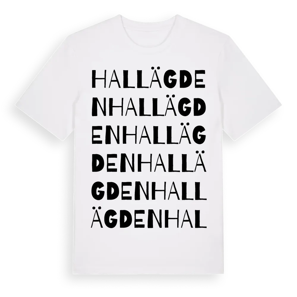 Hallägden ordlek t-shirt är inspirerad av Hallägden i Jämtlands län, Sverige. Tröjan är designad för dig som har en speciell koppling till platsen – oavsett om du bor här, har rötterna här eller bara älskar Hallägden.