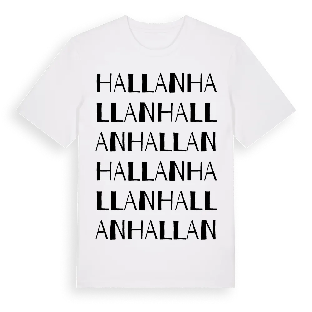 En ordlek byggd på Hallans namn. Subtilt och klurig – ett motiv som bara de som verkligen känner platsen fullt ut förstår. Premium bomull, unisex – från Hallan i Jämtlands län.