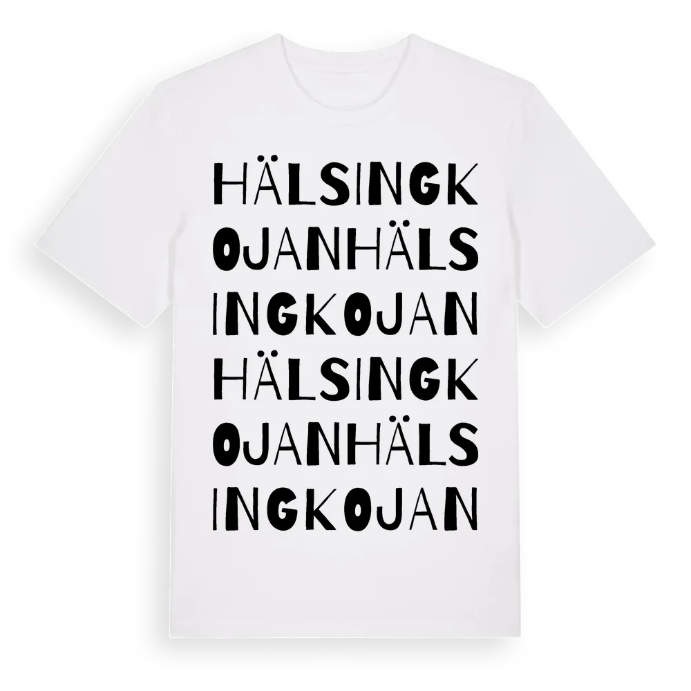 Hälsingkojan ordlek t-shirt är inspirerad av Hälsingkojan i Jämtlands län, Sverige. Tröjan är designad för dig som har en speciell koppling till platsen – oavsett om du bor här, har rötterna här eller bara älskar Hälsingkojan.