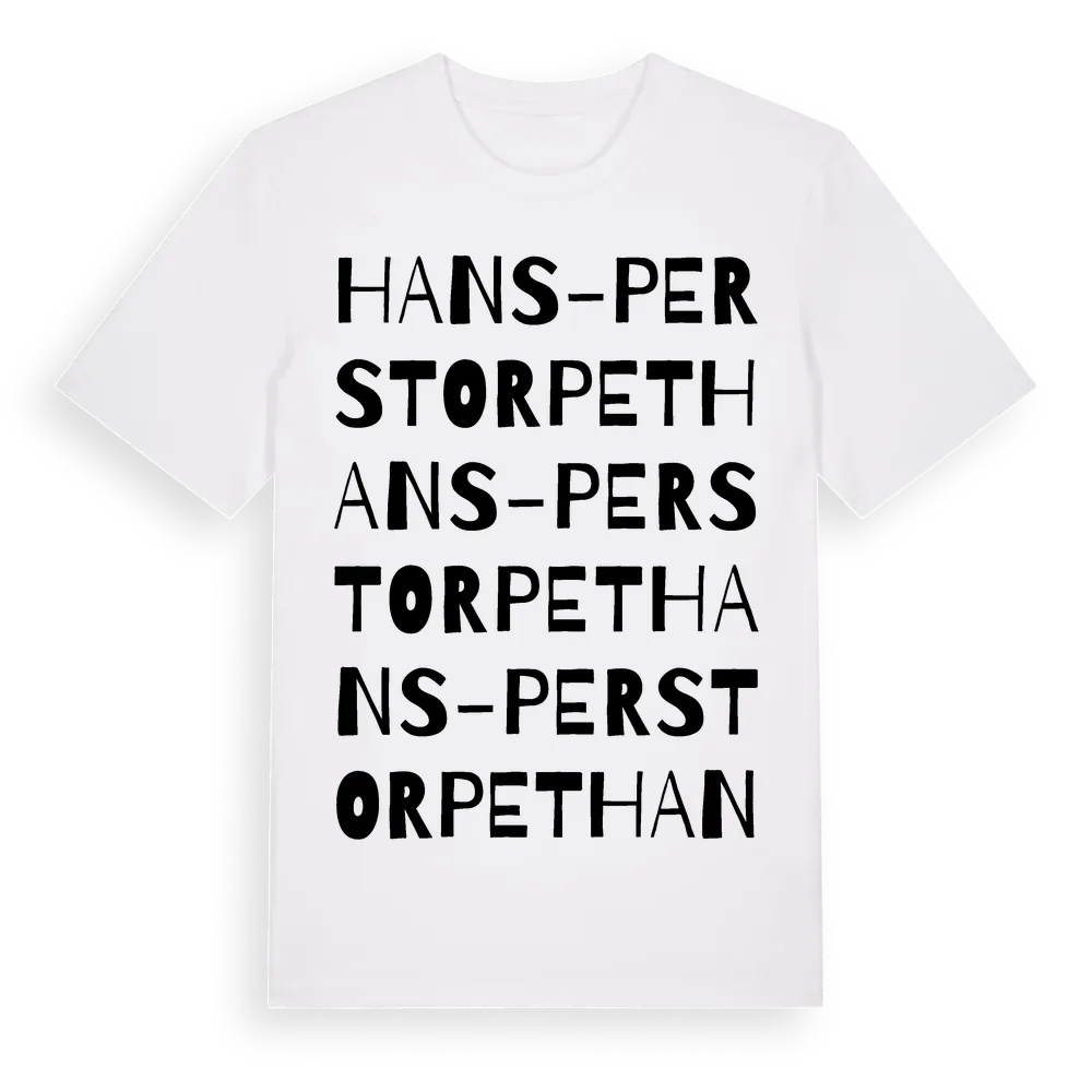 Hans-Perstorpet ordlek t-shirt är inspirerad av Hans-Perstorpet i Jämtlands län, Sverige. Tröjan är designad för dig som har en speciell koppling till platsen – oavsett om du bor här, har rötterna här eller bara älskar Hans-Perstorpet.