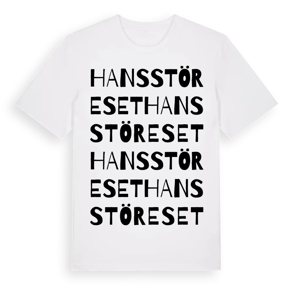 Hansstöreset ordlek t-shirt är inspirerad av Hansstöreset i Jämtlands län, Sverige. Tröjan är designad för dig som har en speciell koppling till platsen – oavsett om du bor här, har rötterna här eller bara älskar Hansstöreset.