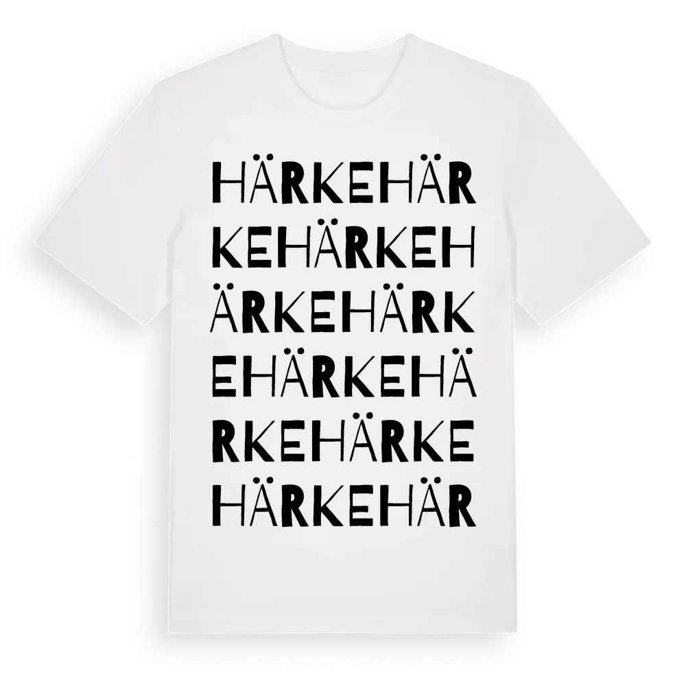 Härke ordlek t-shirt är inspirerad av byn Härke i Jämtlands län, Sverige. Tröjan är designad för dig som har en speciell koppling till platsen – oavsett om du bor här, har rötterna här eller bara älskar Härke.