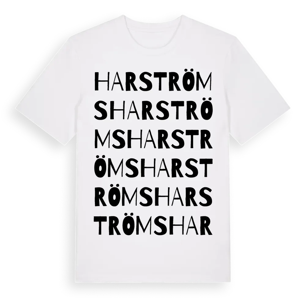 Harströms ordlek t-shirt är inspirerad av Harströms i Jämtlands län, Sverige. Tröjan är designad för dig som har en speciell koppling till platsen – oavsett om du bor här, har rötterna här eller bara älskar Harströms.