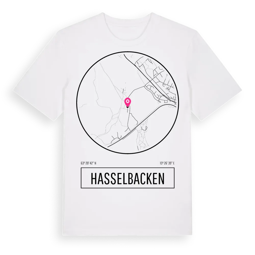 Ett rent, runt tryck med Hasselbackens namn. Minimalistiskt och stilrent – perfekt för den som känner platsen utan att skrika det. Premium bomull, unisex – från stadsdelen Hasselbacken i Jämtlands län.