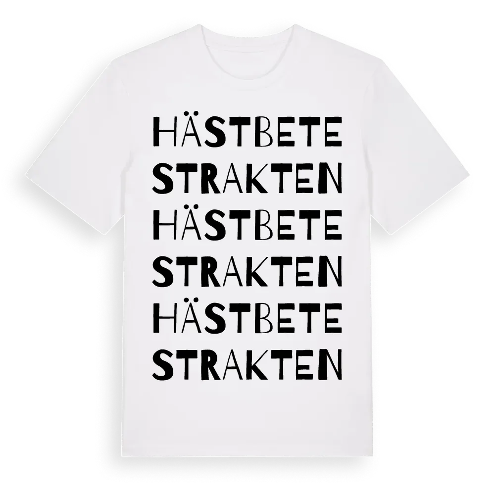 Hästbetestrakten ordlek t-shirt är inspirerad av Hästbetestrakten i Jämtlands län, Sverige. Tröjan är designad för dig som har en speciell koppling till platsen – oavsett om du bor här, har rötterna här eller bara älskar Hästbetestrakten.