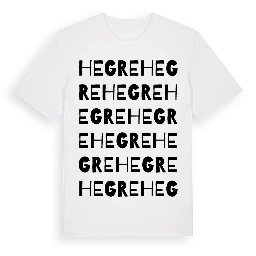 Hegre ordlek t-shirt är inspirerad av Hegre i Jämtlands län, Sverige. Tröjan är designad för dig som har en speciell koppling till platsen – oavsett om du bor här, har rötterna här eller bara älskar Hegre.