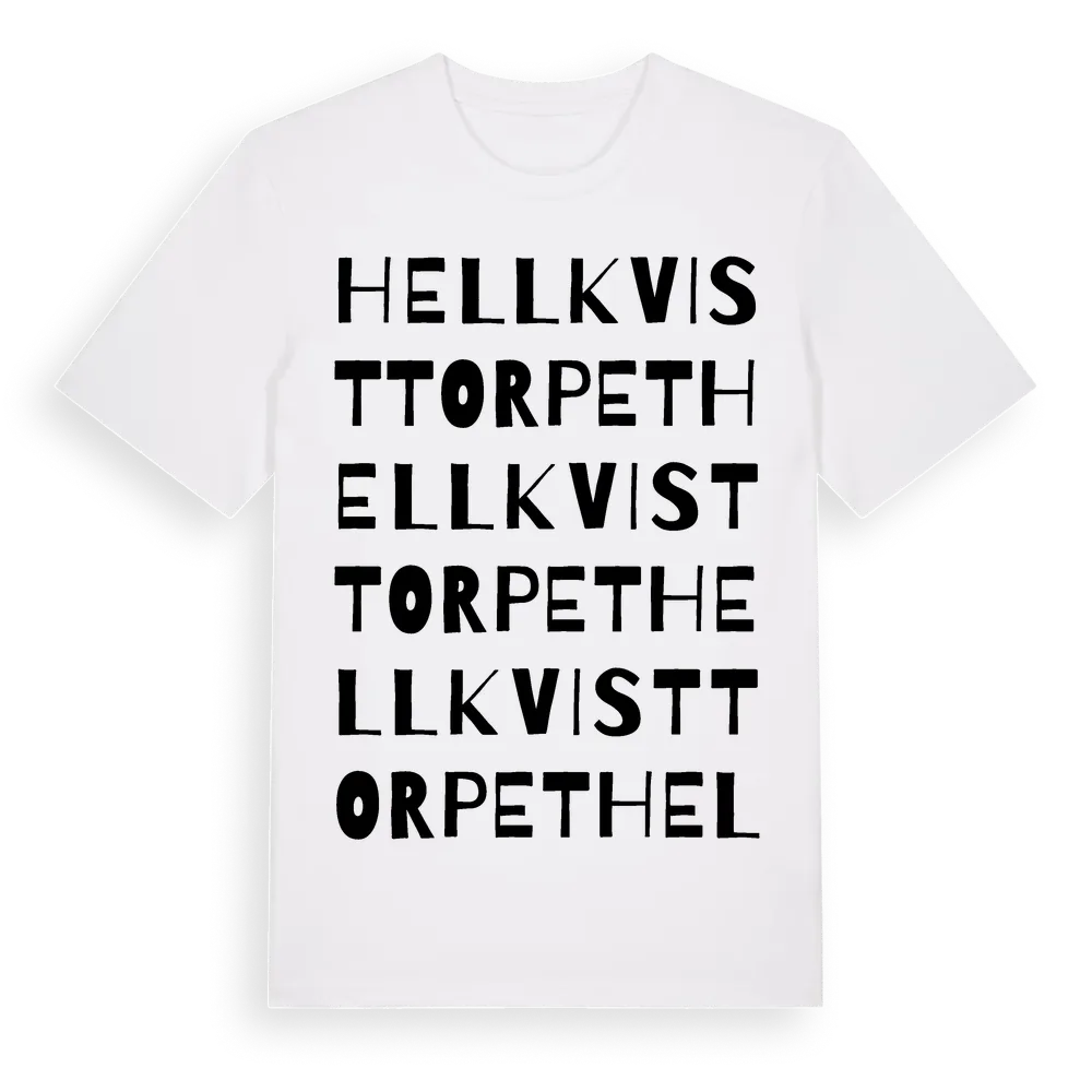Hellkvisttorpet ordlek t-shirt är inspirerad av Hellkvisttorpet i Jämtlands län, Sverige. Tröjan är designad för dig som har en speciell koppling till platsen – oavsett om du bor här, har rötterna här eller bara älskar Hellkvisttorpet.