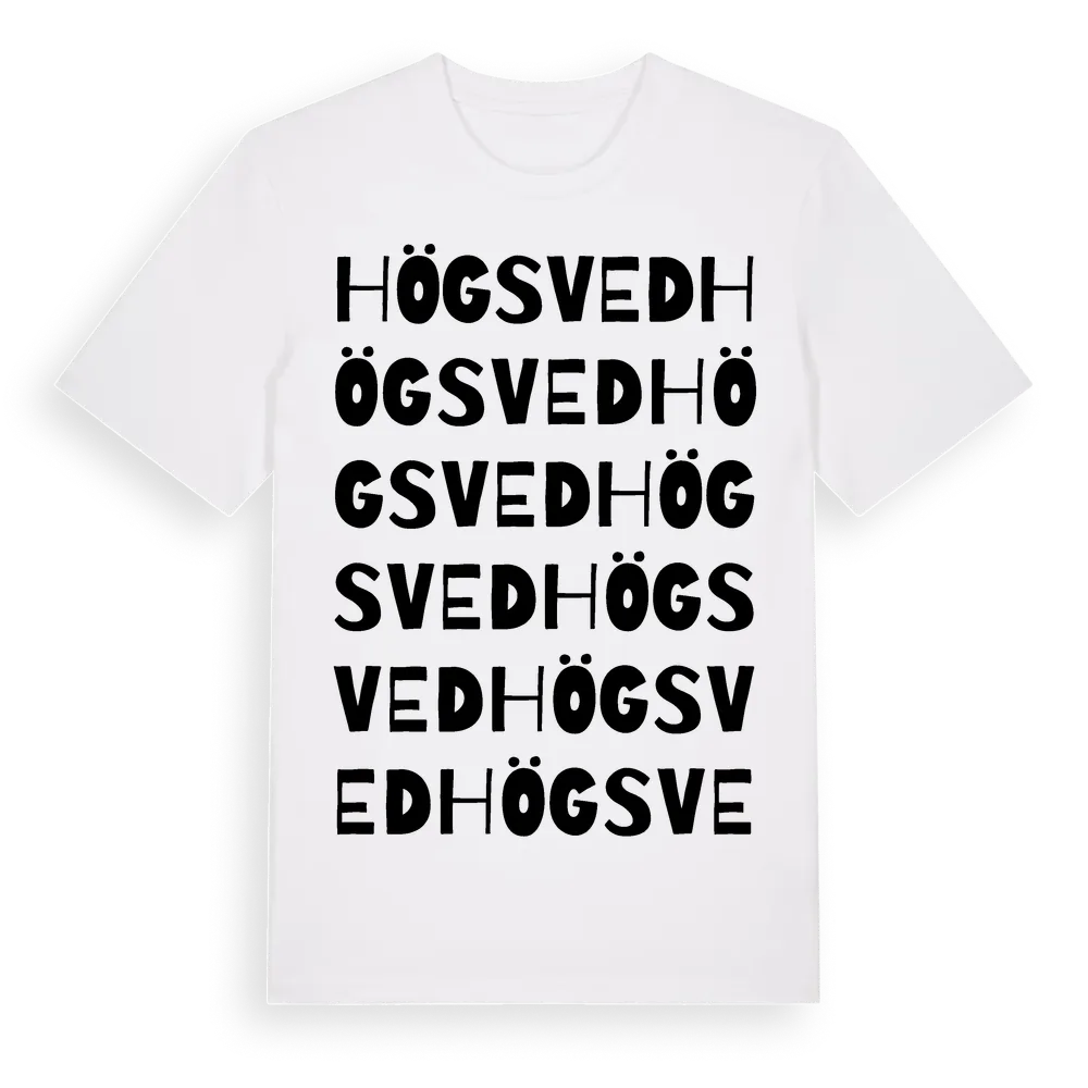 Högsved ordlek t-shirt är inspirerad av Högsved i Jämtlands län, Sverige. Tröjan är designad för dig som har en speciell koppling till platsen – oavsett om du bor här, har rötterna här eller bara älskar Högsved.