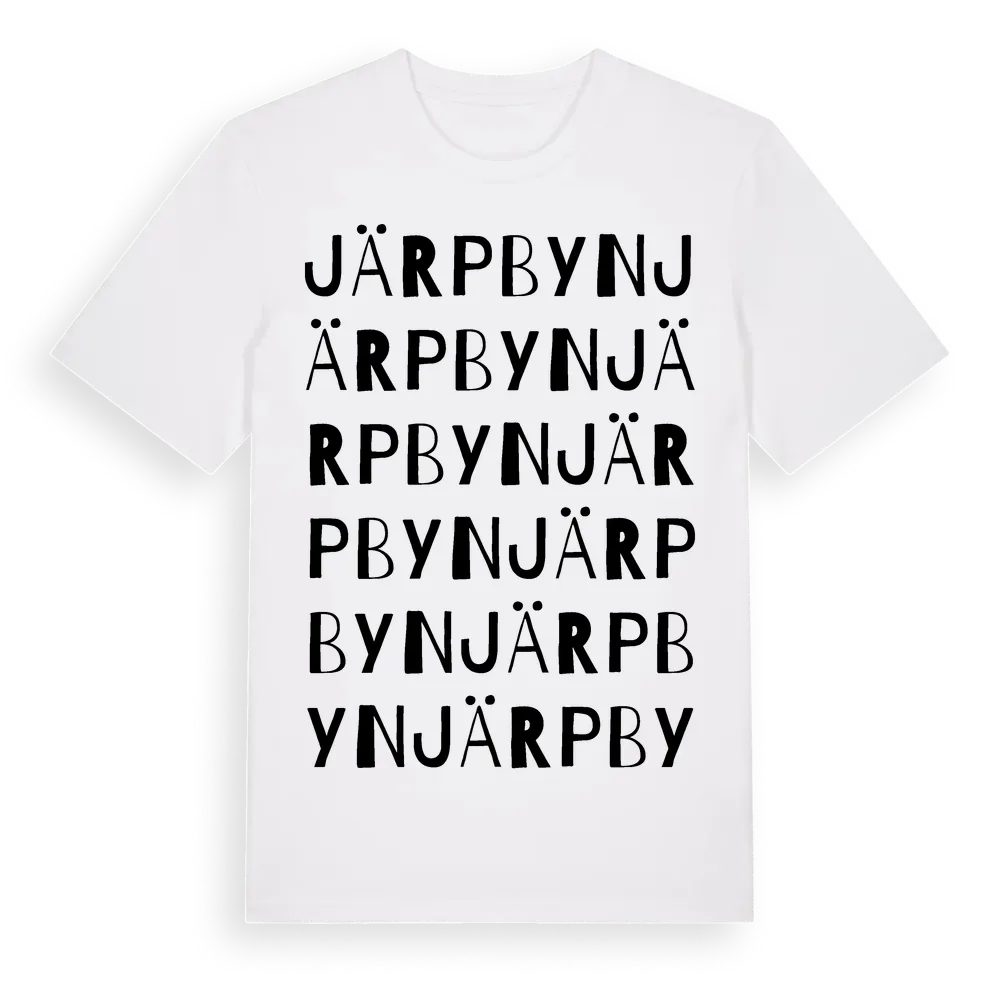 Järpbyn ordlek t-shirt är inspirerad av byn Järpbyn i Jämtlands län, Sverige. Tröjan är designad för dig som har en speciell koppling till platsen – oavsett om du bor här, har rötterna här eller bara älskar Järpbyn.