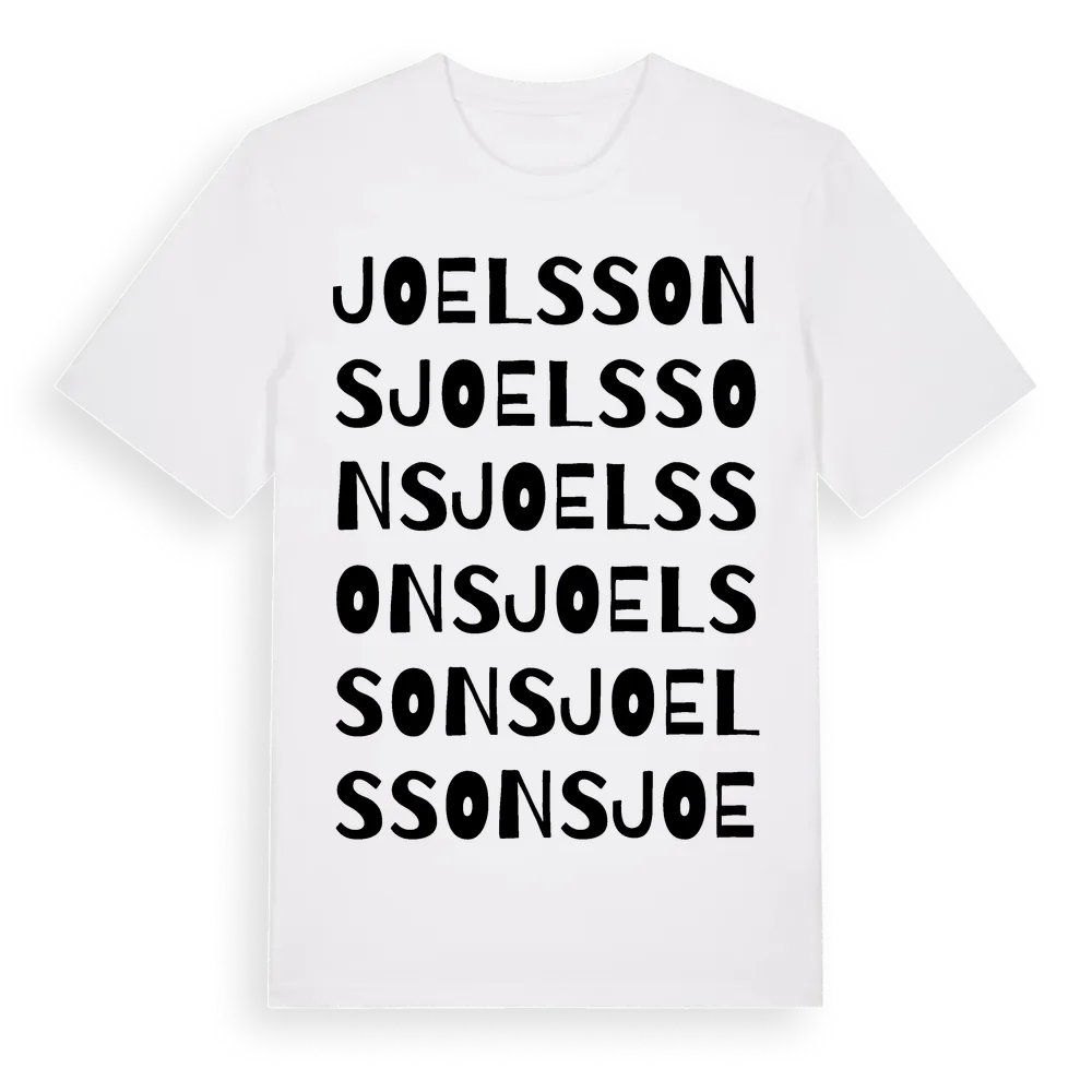 Joelssons ordlek t-shirt är inspirerad av Joelssons i Jämtlands län, Sverige. Tröjan är designad för dig som har en speciell koppling till platsen – oavsett om du bor här, har rötterna här eller bara älskar Joelssons.