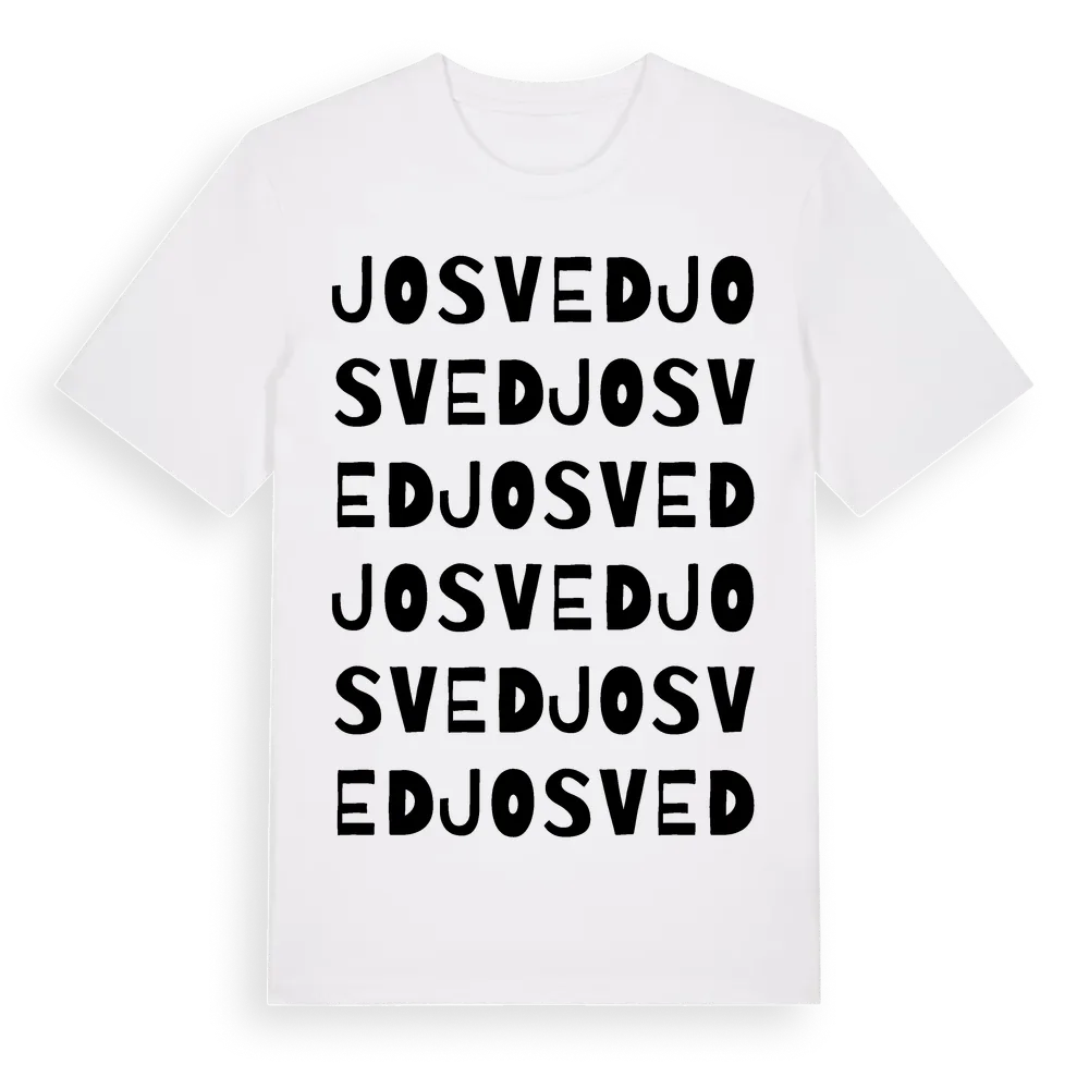Josved ordlek t-shirt är inspirerad av Josved i Jämtlands län, Sverige. Tröjan är designad för dig som har en speciell koppling till platsen – oavsett om du bor här, har rötterna här eller bara älskar Josved.