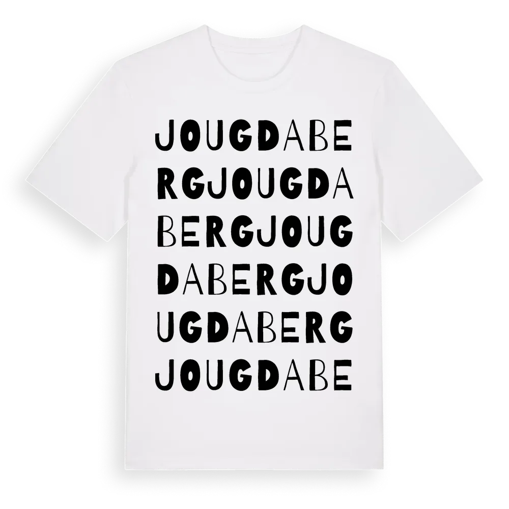 Jougdaberg ordlek t-shirt är inspirerad av Jougdaberg i Jämtlands län, Sverige. Tröjan är designad för dig som har en speciell koppling till platsen – oavsett om du bor här, har rötterna här eller bara älskar Jougdaberg.