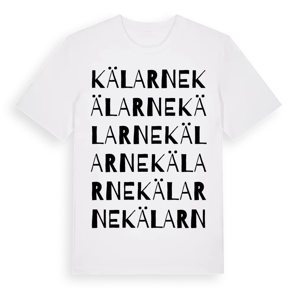 Kälarne ordlek t-shirt är inspirerad av byn Kälarne i Jämtlands län, Sverige. Tröjan är designad för dig som har en speciell koppling till platsen – oavsett om du bor här, har rötterna här eller bara älskar Kälarne.
