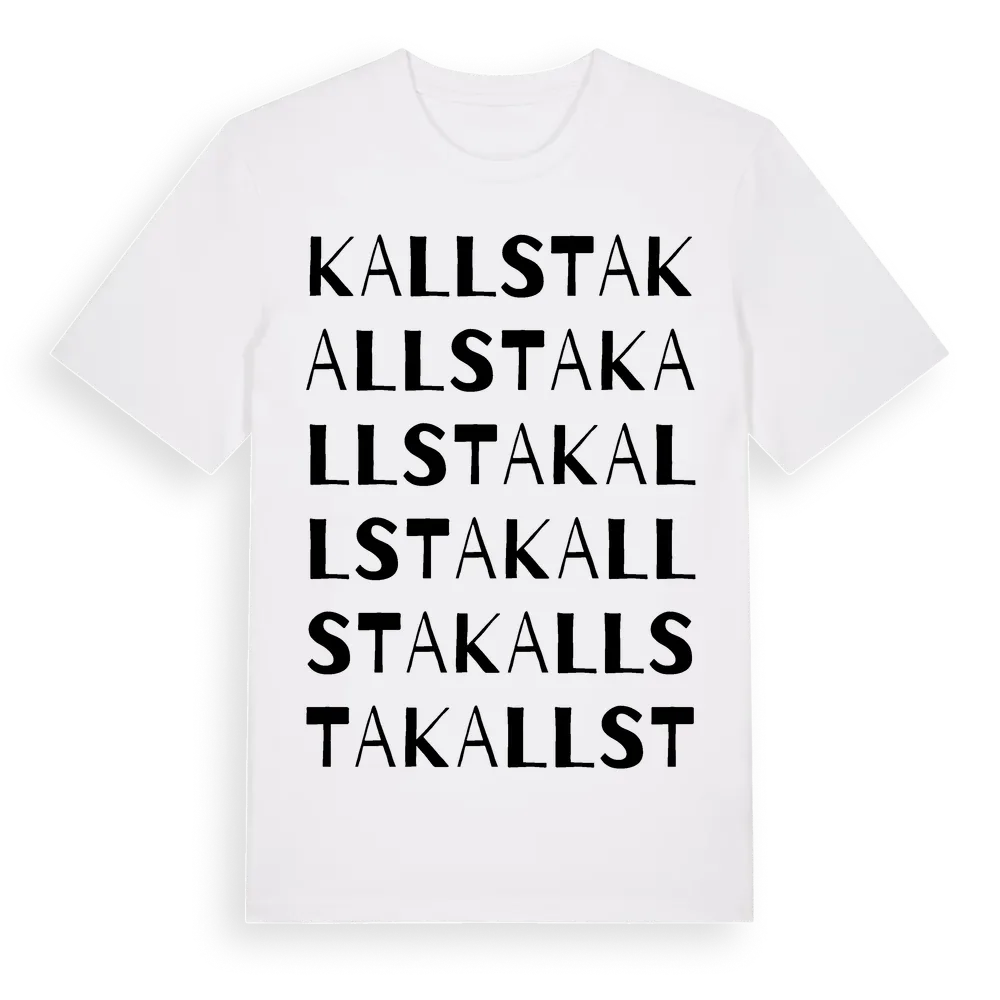 En ordlek byggd på Kallstas namn. Subtilt och klurig – ett motiv som bara de som verkligen känner platsen fullt ut förstår. Premium bomull, unisex – från byn Kallsta i Jämtlands län.