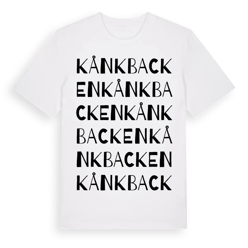 Kånkbacken ordlek t-shirt är inspirerad av byn Kånkbacken i Jämtlands län, Sverige. Tröjan är designad för dig som har en speciell koppling till platsen – oavsett om du bor här, har rötterna här eller bara älskar Kånkbacken.