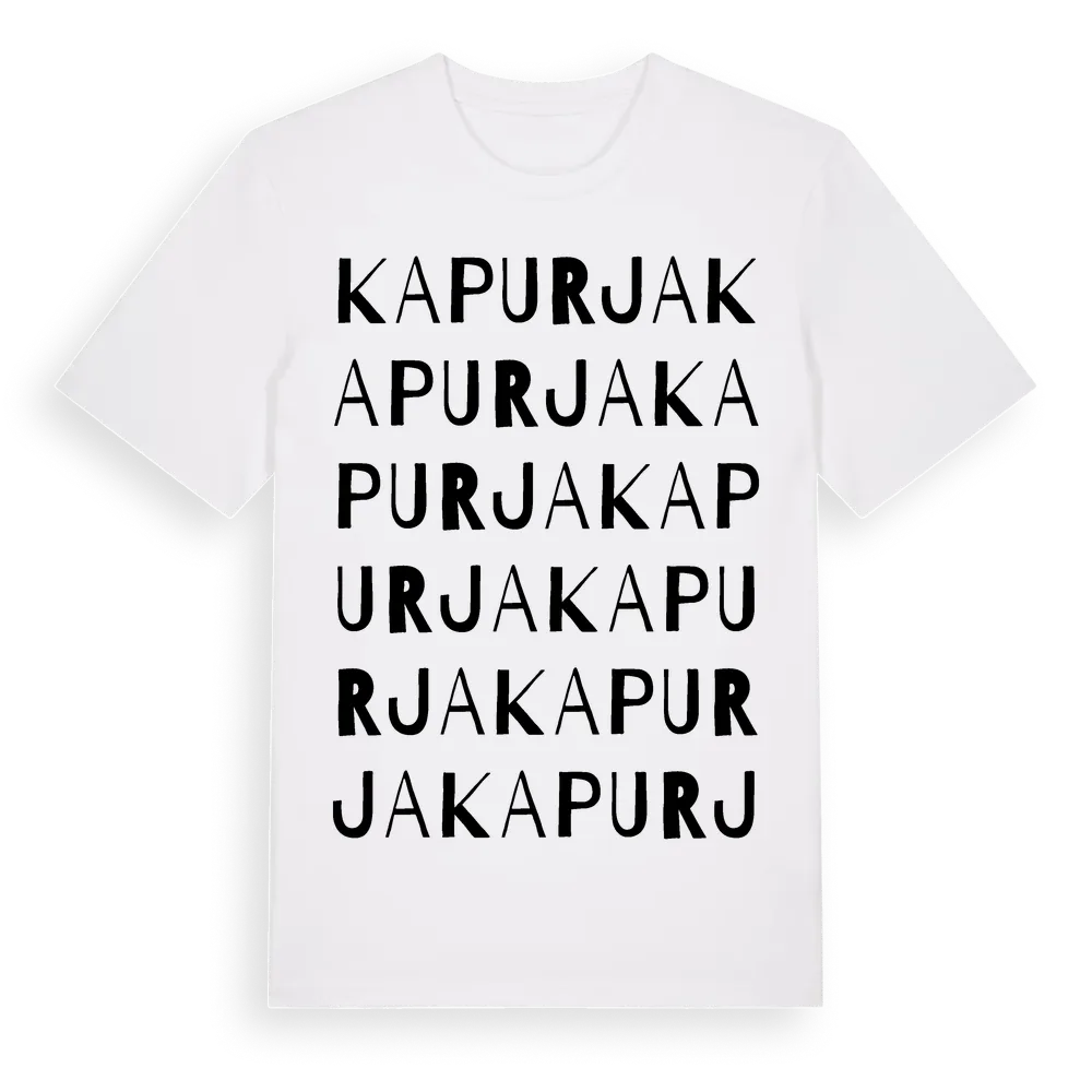 Kapurja ordlek t-shirt är inspirerad av Kapurja i Jämtlands län, Sverige. Tröjan är designad för dig som har en speciell koppling till platsen – oavsett om du bor här, har rötterna här eller bara älskar Kapurja.