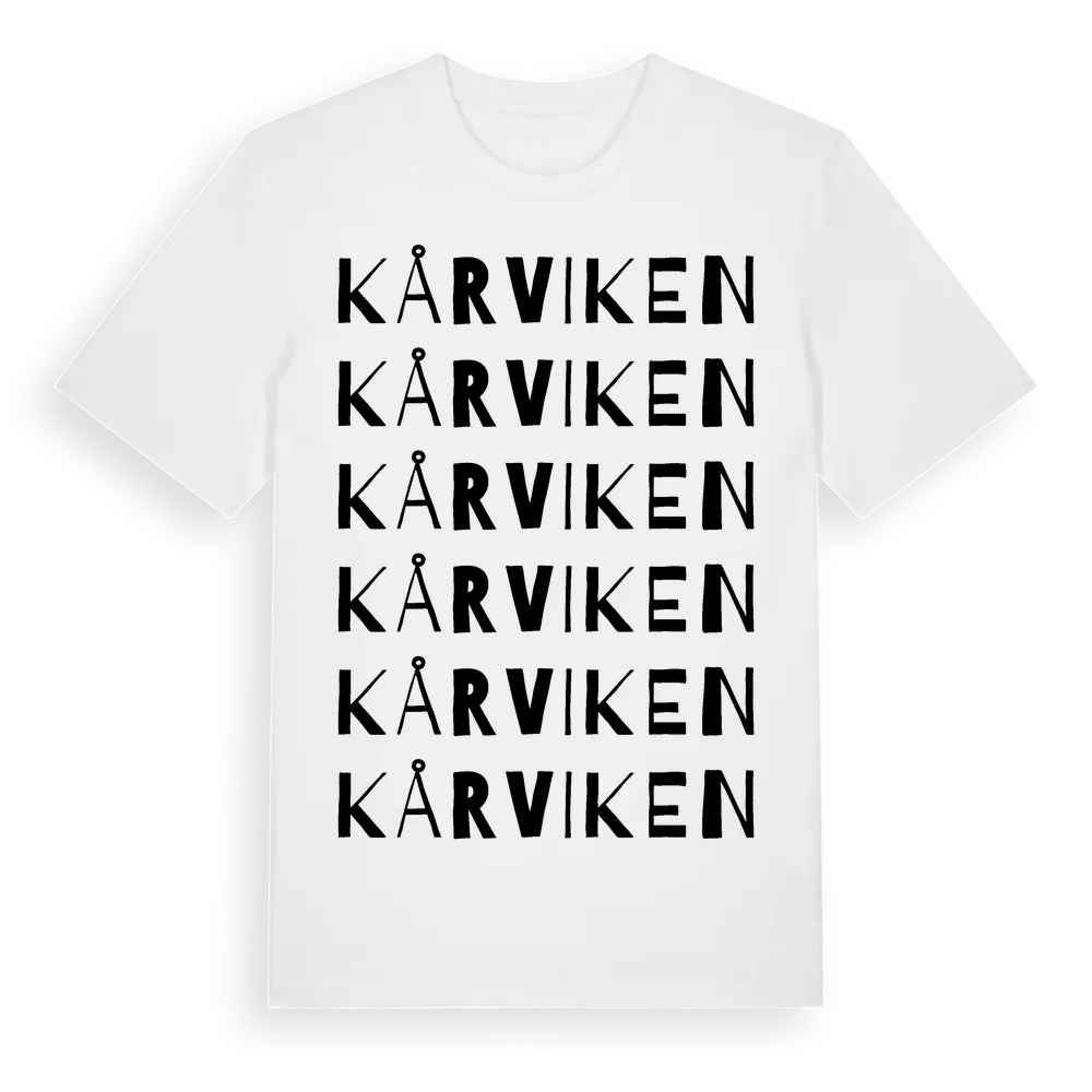 Kårviken ordlek t-shirt är inspirerad av byn Kårviken i Jämtlands län, Sverige. Tröjan är designad för dig som har en speciell koppling till platsen – oavsett om du bor här, har rötterna här eller bara älskar Kårviken.