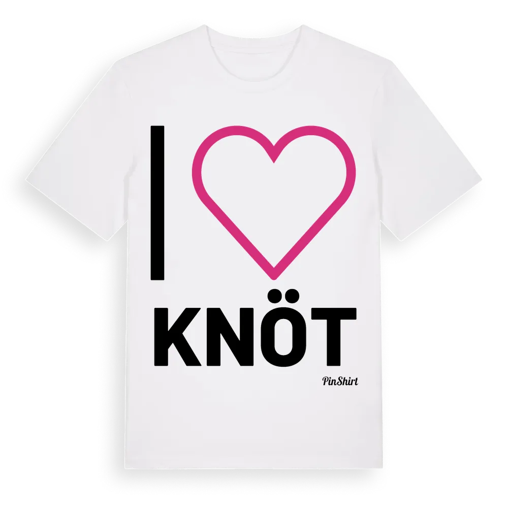Det klassiska "I ❤ Knöt"-motivet i stort format som täcker hela bröstet. För dig som vill visa kärleken till Knöt på riktigt. Premium bomull, unisex – från Knöt i Jämtlands län.