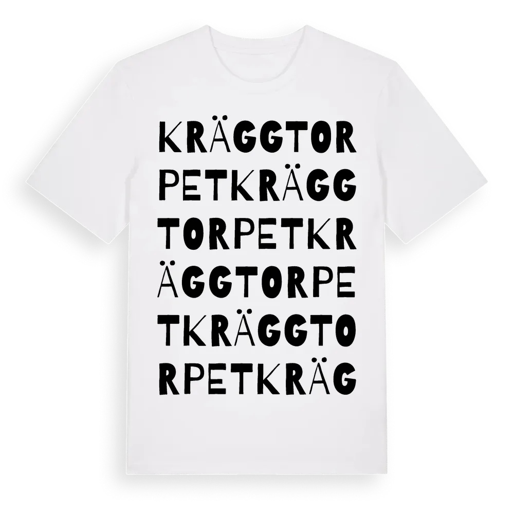 Kräggtorpet ordlek t-shirt är inspirerad av Kräggtorpet i Jämtlands län, Sverige. Tröjan är designad för dig som har en speciell koppling till platsen – oavsett om du bor här, har rötterna här eller bara älskar Kräggtorpet.