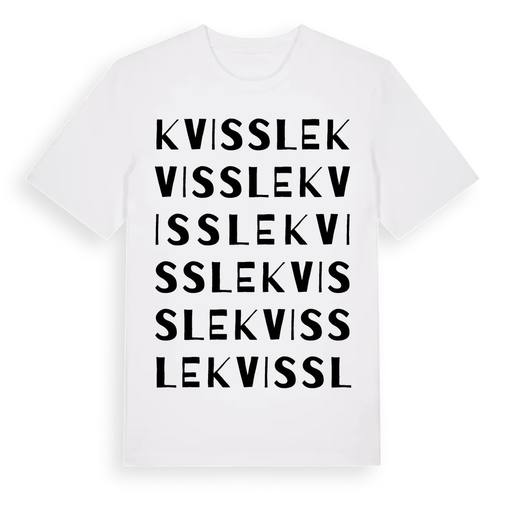 Kvissle ordlek t-shirt är inspirerad av byn Kvissle i Jämtlands län, Sverige. Tröjan är designad för dig som har en speciell koppling till platsen – oavsett om du bor här, har rötterna här eller bara älskar Kvissle.