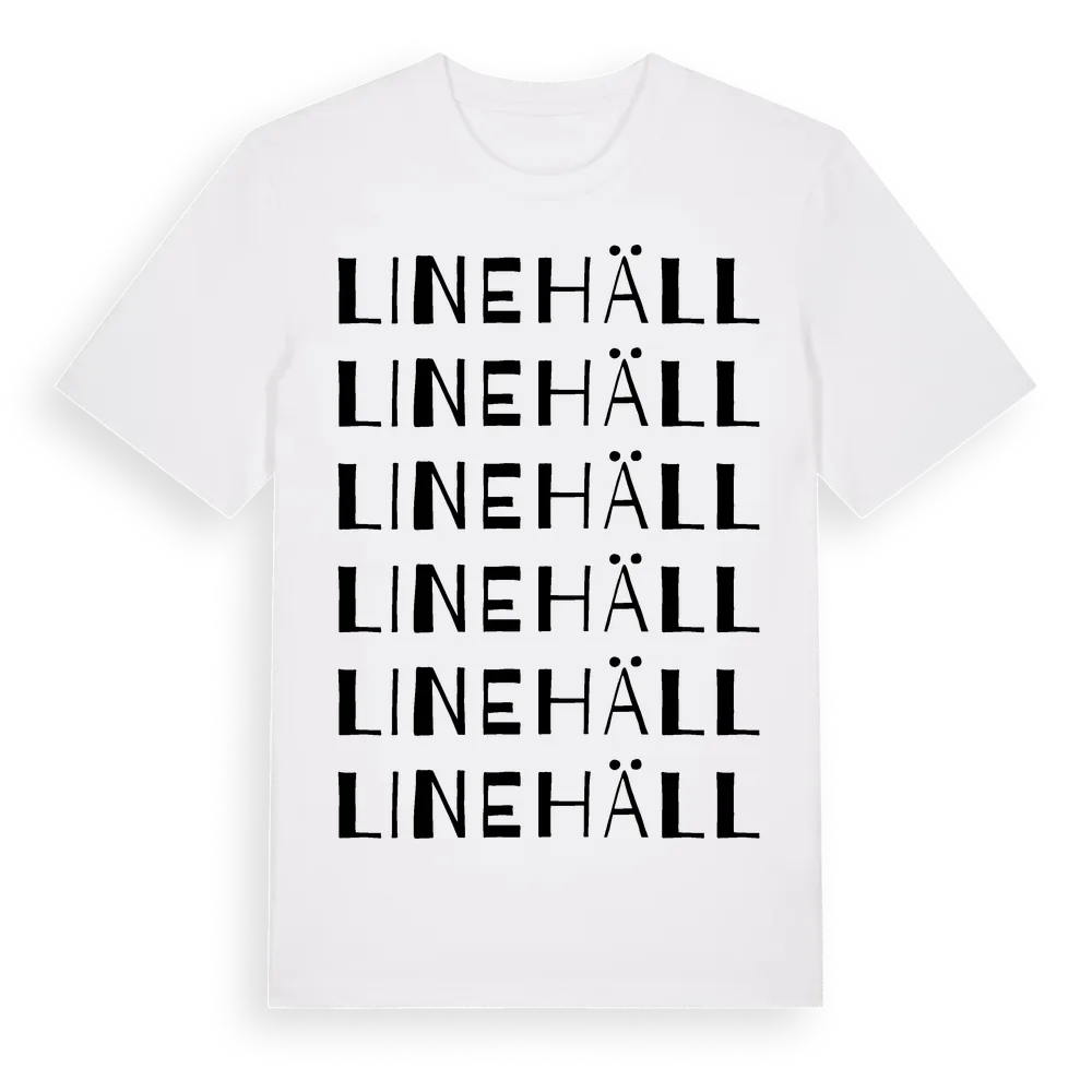 En ordlek byggd på Linehälls namn. Subtilt och klurig – ett motiv som bara de som verkligen känner platsen fullt ut förstår. Premium bomull, unisex – från byn Linehäll i Jämtlands län.