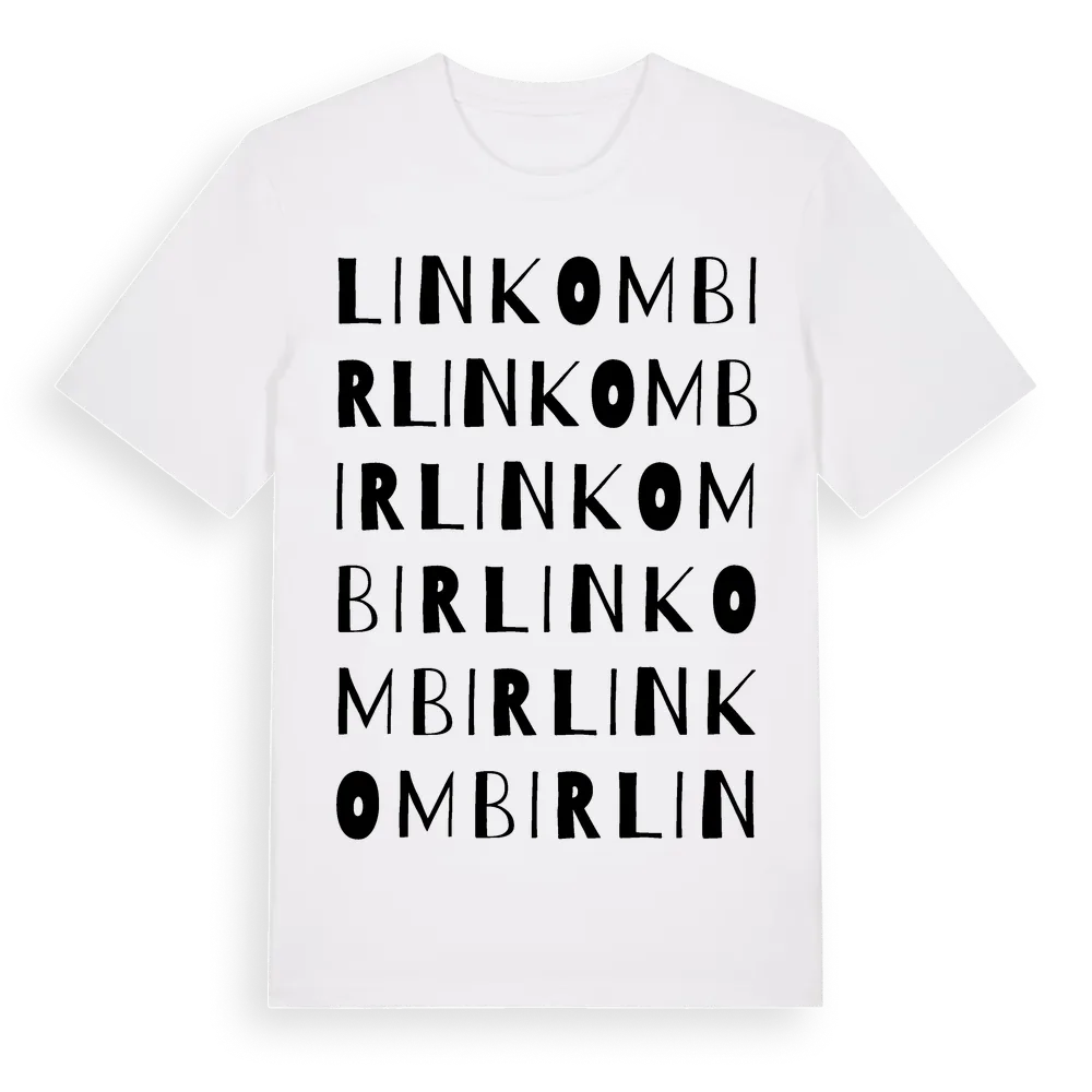 Linkombir ordlek t-shirt är inspirerad av Linkombir i Jämtlands län, Sverige. Tröjan är designad för dig som har en speciell koppling till platsen – oavsett om du bor här, har rötterna här eller bara älskar Linkombir.