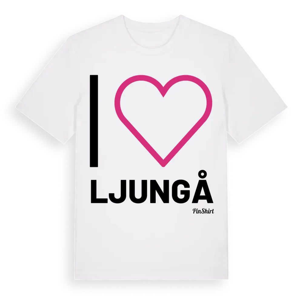 Det klassiska "I ❤ Ljungå"-motivet i stort format som täcker hela bröstet. För dig som vill visa kärleken till Ljungå på riktigt. Premium bomull, unisex – från byn Ljungå i Jämtlands län.