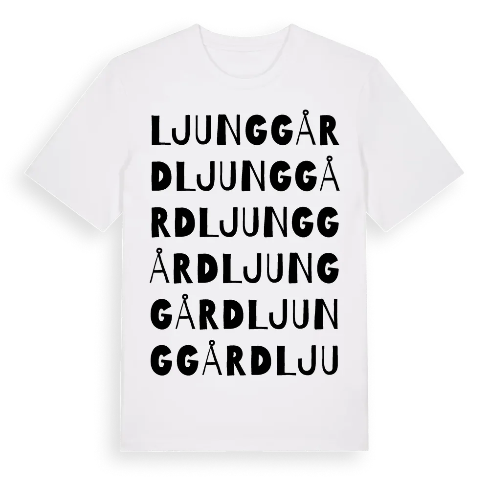 Ljunggård ordlek t-shirt är inspirerad av Ljunggård i Jämtlands län, Sverige. Tröjan är designad för dig som har en speciell koppling till platsen – oavsett om du bor här, har rötterna här eller bara älskar Ljunggård.
