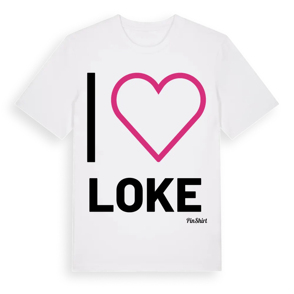 Det klassiska "I ❤ Loke"-motivet i stort format som täcker hela bröstet. För dig som vill visa kärleken till Loke på riktigt. Premium bomull, unisex – från byn Loke i Jämtlands län.