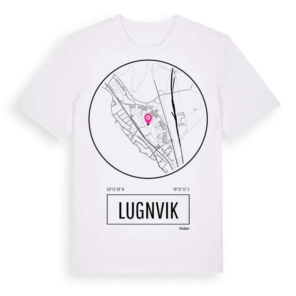 Lugnvik t-shirt är inspirerad av stadsdelen Lugnvik i Jämtlands län, Sverige. Tröjan är designad för dig som har en speciell koppling till platsen – oavsett om du bor här, har rötterna här eller bara älskar Lugnvik.