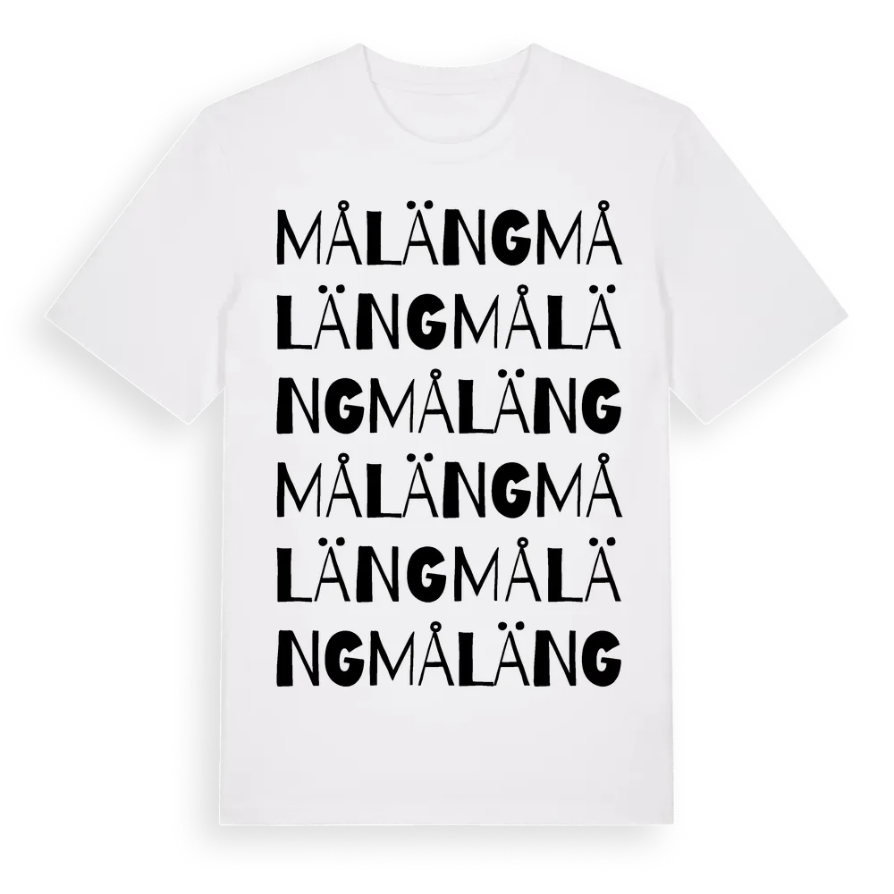 Måläng ordlek t-shirt är inspirerad av Måläng i Jämtlands län, Sverige. Tröjan är designad för dig som har en speciell koppling till platsen – oavsett om du bor här, har rötterna här eller bara älskar Måläng.