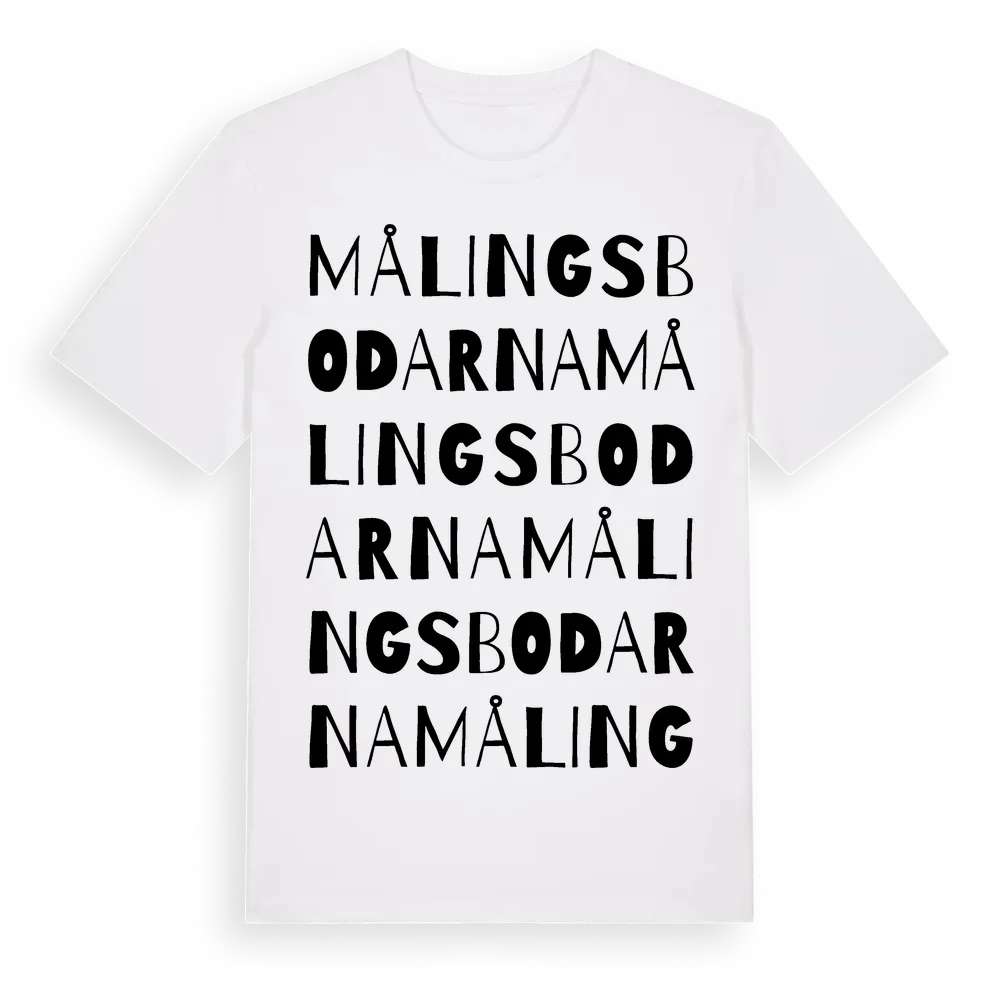 Målingsbodarna ordlek t-shirt är inspirerad av Målingsbodarna i Jämtlands län, Sverige. Tröjan är designad för dig som har en speciell koppling till platsen – oavsett om du bor här, har rötterna här eller bara älskar Målingsbodarna.