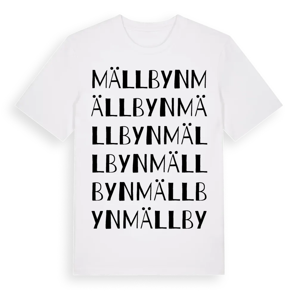 Mällbyn ordlek t-shirt är inspirerad av byn Mällbyn i Jämtlands län, Sverige. Tröjan är designad för dig som har en speciell koppling till platsen – oavsett om du bor här, har rötterna här eller bara älskar Mällbyn.