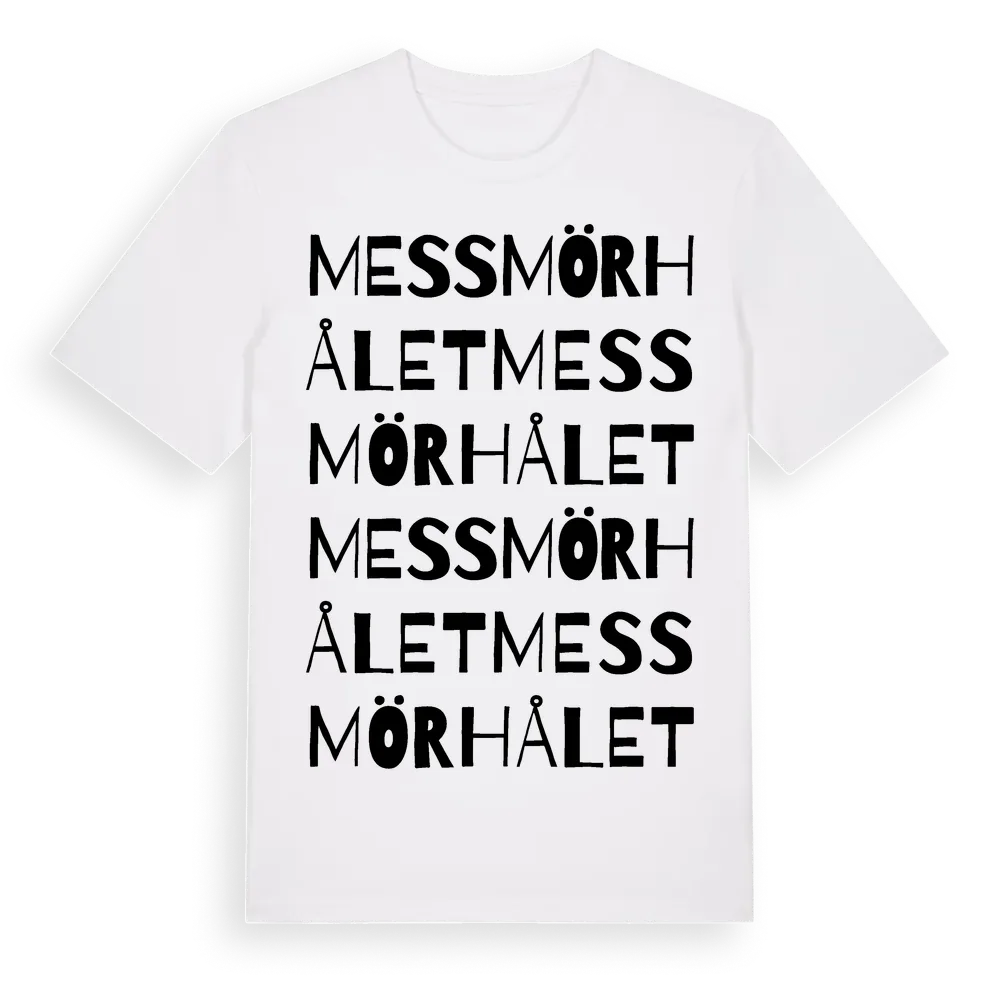 Messmörhålet ordlek t-shirt är inspirerad av Messmörhålet i Jämtlands län, Sverige. Tröjan är designad för dig som har en speciell koppling till platsen – oavsett om du bor här, har rötterna här eller bara älskar Messmörhålet.