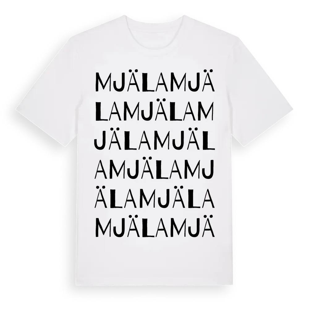 Mjäla ordlek t-shirt är inspirerad av byn Mjäla i Jämtlands län, Sverige. Tröjan är designad för dig som har en speciell koppling till platsen – oavsett om du bor här, har rötterna här eller bara älskar Mjäla.