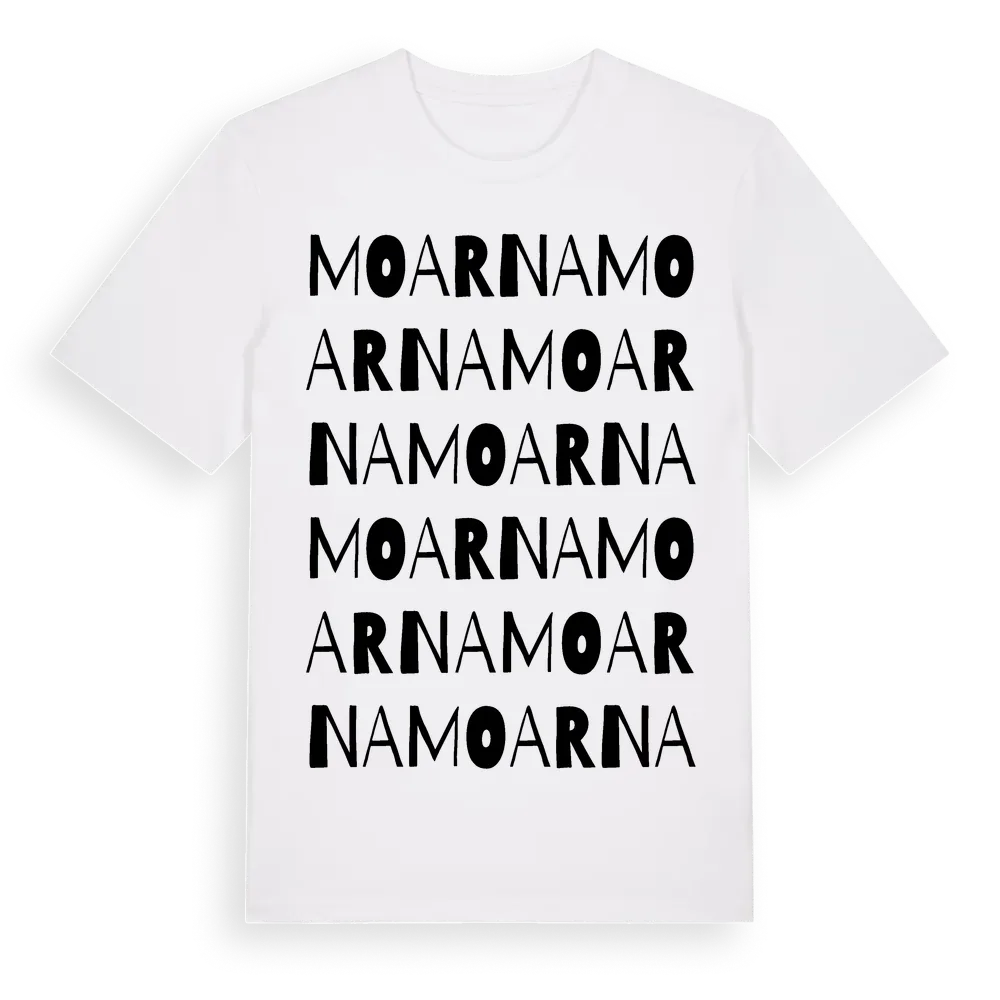 Moarna ordlek t-shirt är inspirerad av Moarna i Jämtlands län, Sverige. Tröjan är designad för dig som har en speciell koppling till platsen – oavsett om du bor här, har rötterna här eller bara älskar Moarna.
