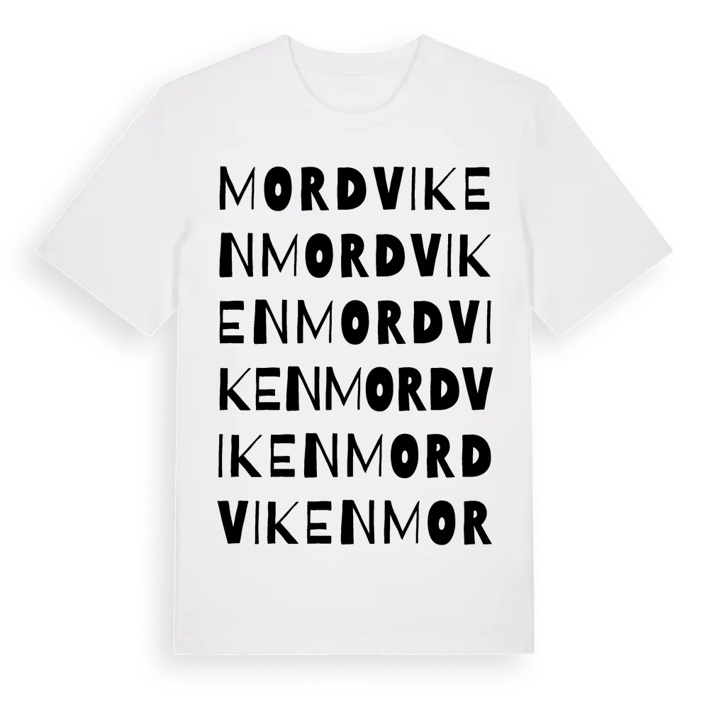Mordviken ordlek t-shirt är inspirerad av byn Mordviken i Jämtlands län, Sverige. Tröjan är designad för dig som har en speciell koppling till platsen – oavsett om du bor här, har rötterna här eller bara älskar Mordviken.