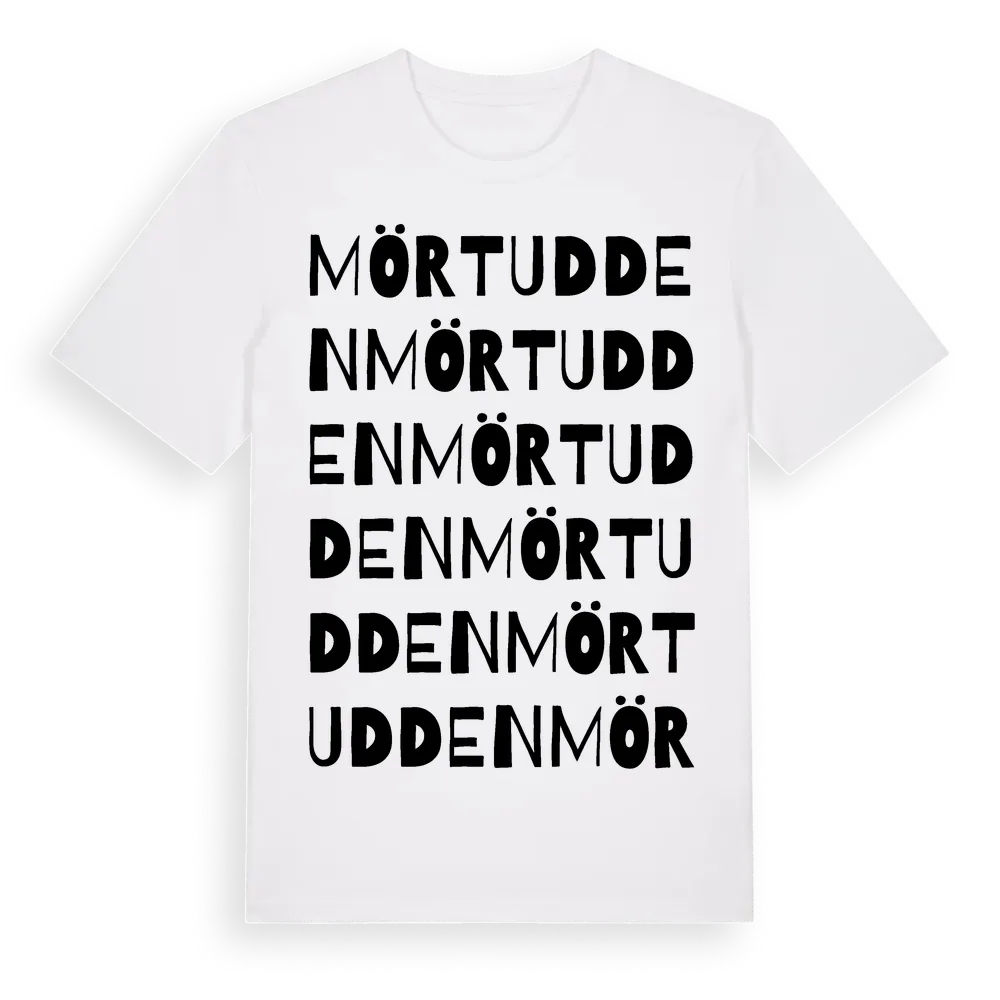 Mörtudden ordlek t-shirt är inspirerad av byn Mörtudden i Jämtlands län, Sverige. Tröjan är designad för dig som har en speciell koppling till platsen – oavsett om du bor här, har rötterna här eller bara älskar Mörtudden.